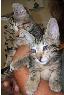 O João e a Maria são 2 gatinhos que recolhemos da rua, num estado péssimo. Tudo foi feito para lhes salvar os olhos, mas devido ao estado avançado da doença, não foi possível atingir os objectivos, ou seja, ficarem com os olhinhos totalmente saudáveis. Estão há 2 meses numa clinica veterinária e não vão poder ficar muito mais tempo, pois precisam de donos que os acarinhem. Não estão completamente cegos e fazem a sua vidinha como qualquer gatinho normal, saltam, vão ao areão, brincam e adoram-se!